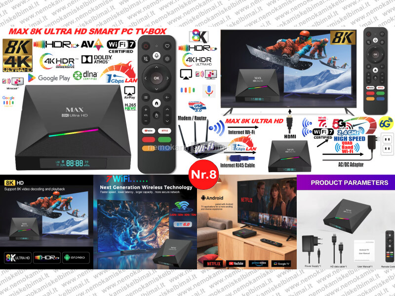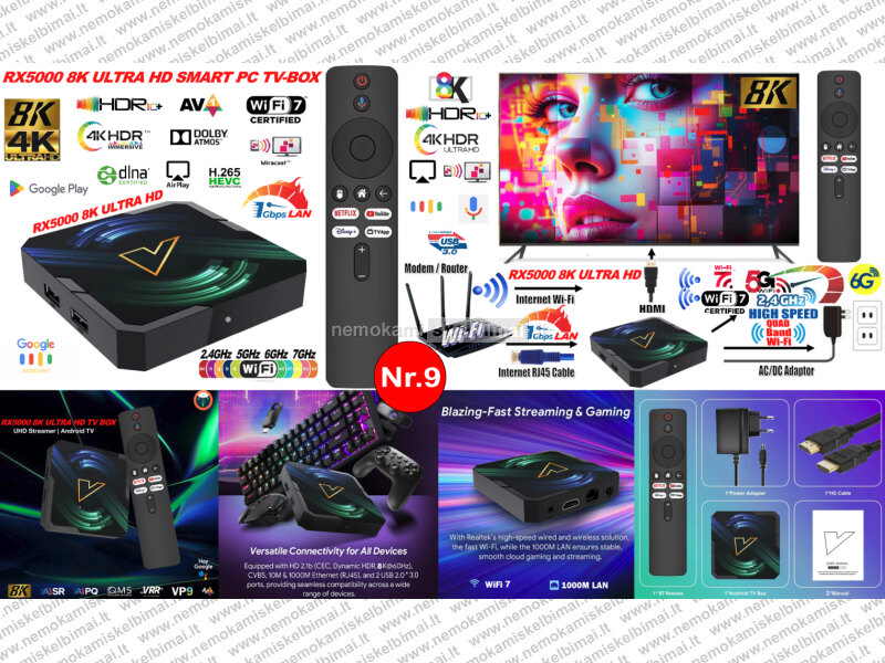 - NAUJAUSI 2026 METŲ MODELIAI! - TIK AUKŠTOS KOKYBĖS ŽINOMŲ GAMINTOJŲ, ORIGINALŪS, SERTIFIKUOTI, ITIN GALINGI IR SPARTŪS, IŠMANIEJI PRIEDĖLIAI-TV IMTUVAI - 8K ULTRA HD TV-BOX.