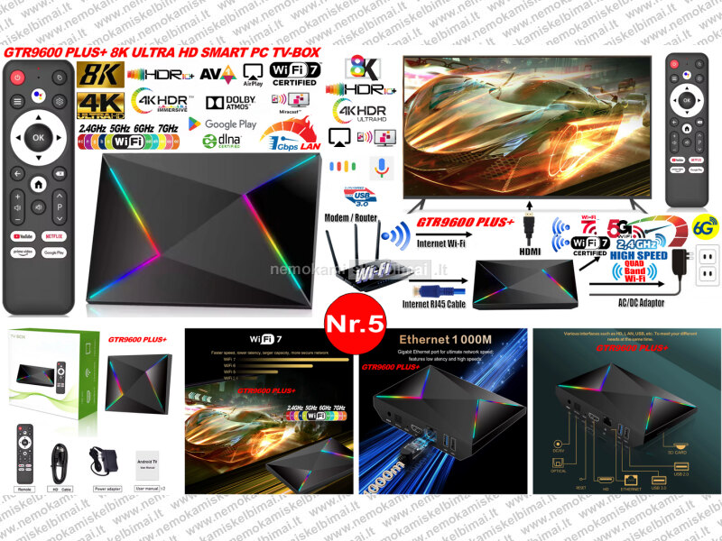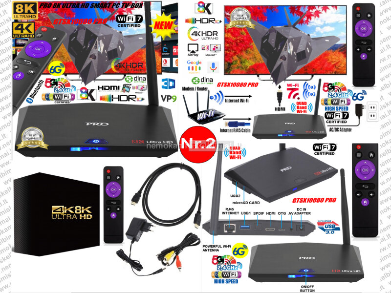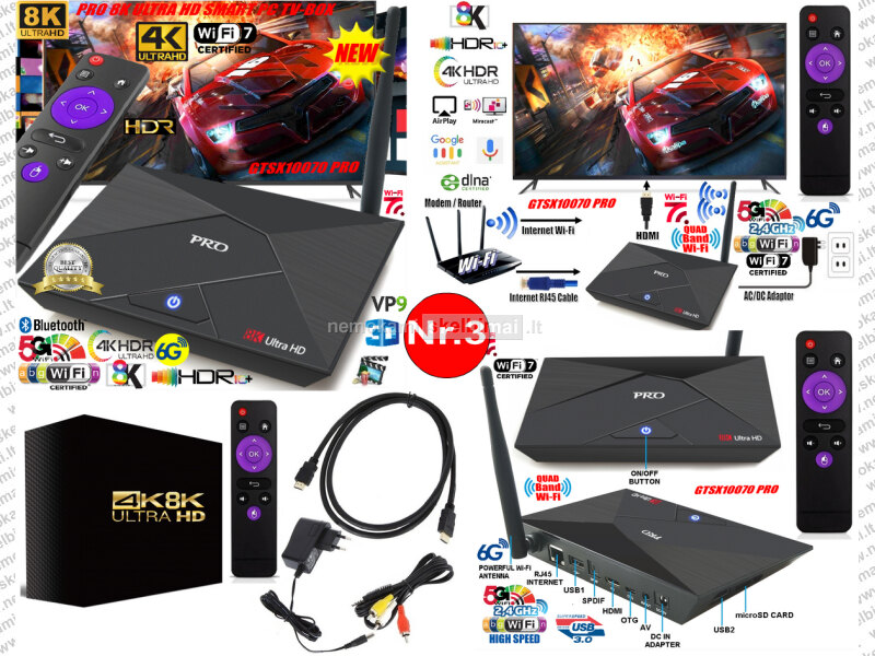 - AUKŠTOS KOKYBĖS IŠMANUSIS TV-IMTUVAS 8K ULTRA HD SMART PC TV-BOX - LEIS JŪSŲ TELEVIZORIŲ PAVERSTI ĮSPŪDINGA PRAMOGŲ SISTEMA! IR NAUDOTIS VISAIS ANDROID OPERACINĖS SISTEMOS PRIVALUMAIS - YPAČ PLATUS BERIBIS MULTIMEDIJOS TURINYS! INTEGRUOTOS TŪKSTANČIAI VISIŠKAI NEMOKAMŲ PROGRAMŲ-TV KANALŲ-FILMŲ-SERIALŲ-GO3-LT-TV IŠ GOOGLE PLAY STORE 8K ULTRA HD / 6K / 4K / FULL HD / KOKYBĖJE! YOUTUBE - BE REKLAMOS!, TIKTOK, GALIMYBĖ NARŠYTI INTERNETE, BENDRAUTI PER VIBER, MESSENGER, FACEBOOK, TWITTER, NAUDOTIS, EL. PAŠTO BEI DOKUMENTŲ REDAGAVIMO IR PERŽIŪROS PROGRAMOMIS, ŽAISTI ŽAIDIMUS, KLAUSYTIS DAUGYBE SKAITMENINIŲ RADIJO STOČIŲ, MUZIKOS Ir Daug Daugiau!