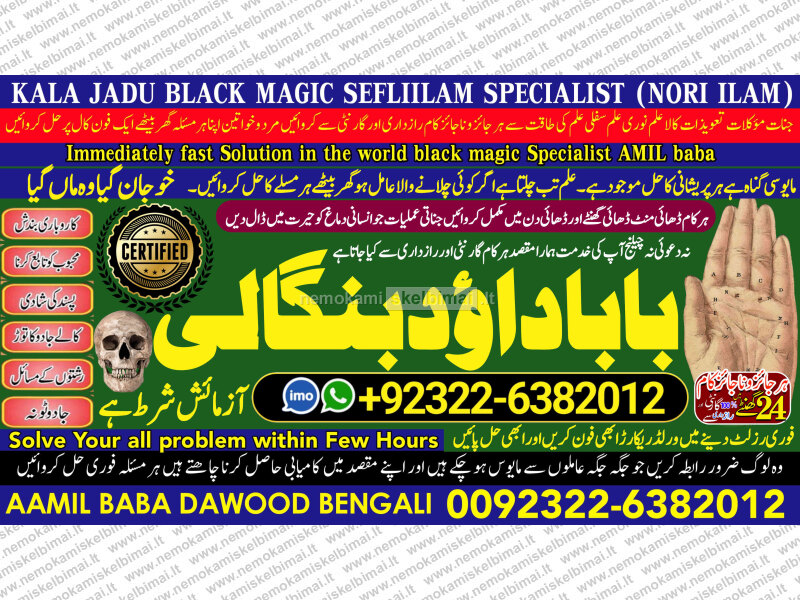 Amil Baba Dawood Bangali { PAK: 0322-6382012 ---- UAN: 0092-322-6382012} is a renowned spiritual healer and master of ancient occult sciences, specializing in Black Magic, Sephi Ilam, Nori Ilam, and Voodoo Spells. With decades of experience in the mystical arts, he has gained a reputation as a powerful and trusted guide for those seeking solutions to life's most challenging problems.