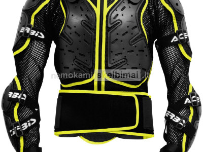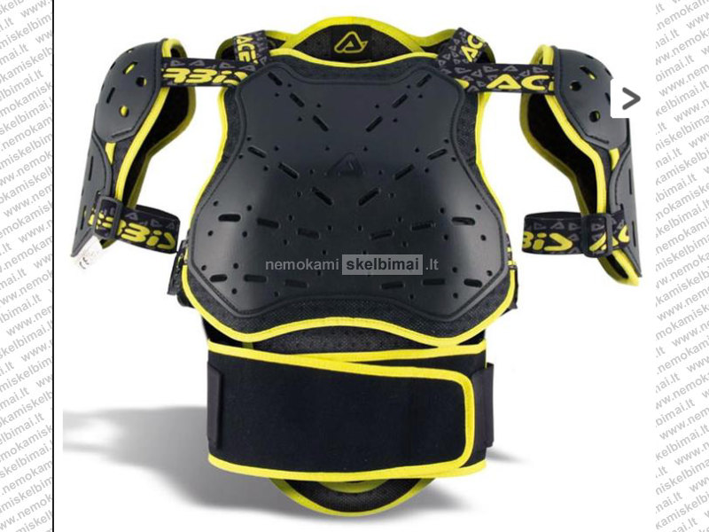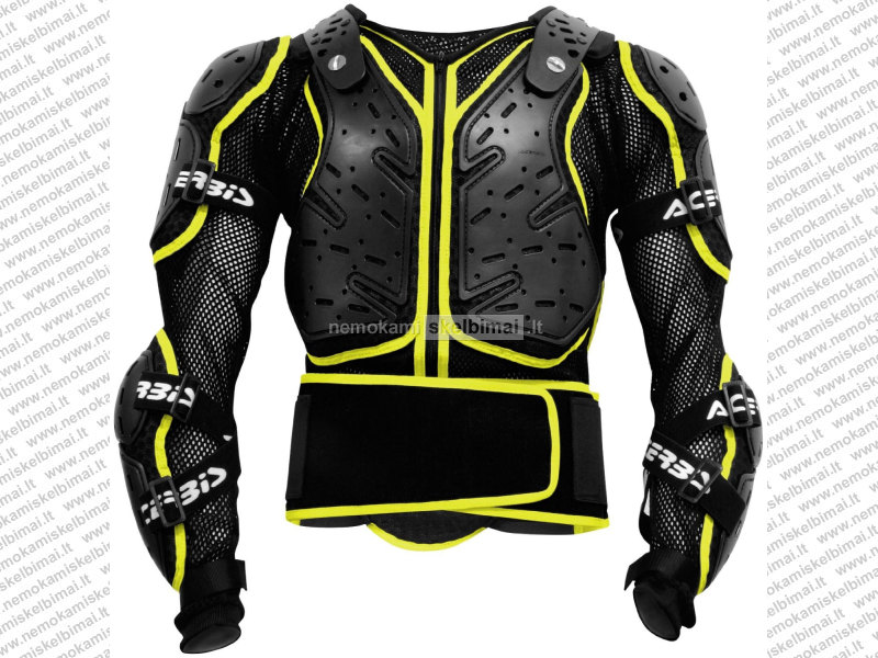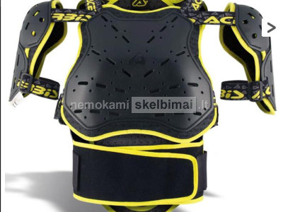 komplektas: krūtinės apsauga, nugaros apsauga su stuburo prilaikymo diržu, pečių apsauga, alkūnių apsauga.