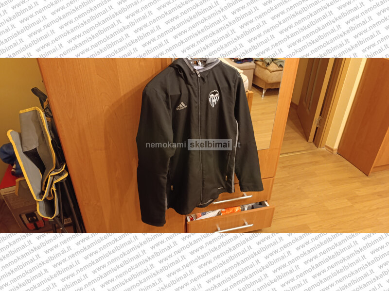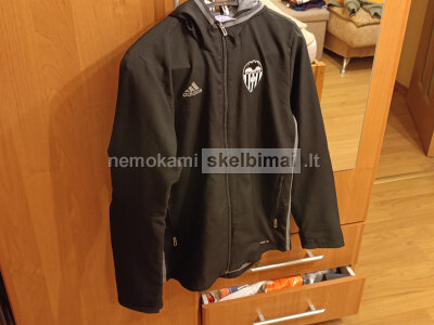 Parduodu originalų Adidas firmos Valencia futbolo klubo džemperį-striukę. Būklė labai gera, defektų nėra. Dydis vaikiškas L, skirtas 13-14 metų vaikams.
