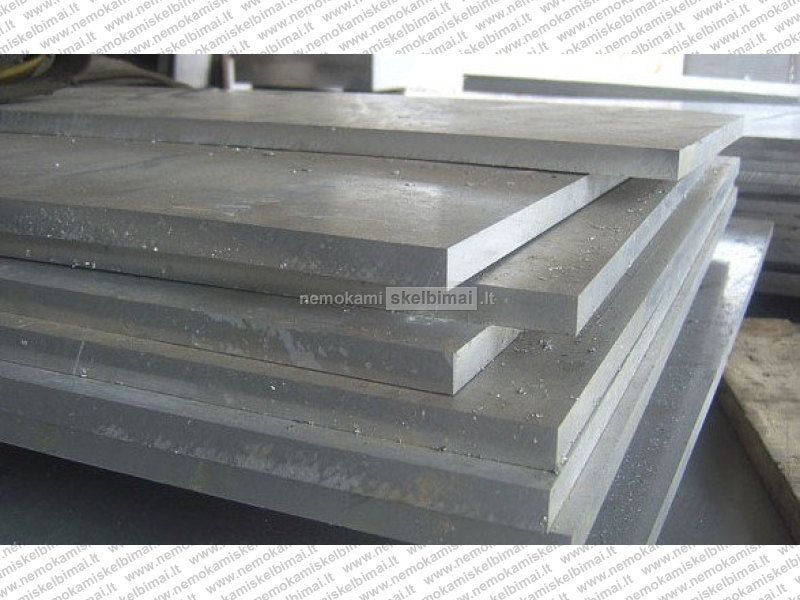 Aliuminio lakštai įvairių storių, nuo 0,5 mm iki 125,0 mm storio.