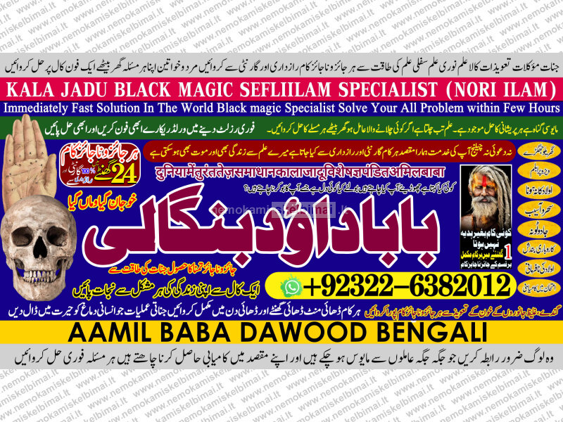 Amil Baba Dawood Bangali { PAK: 0322-6382012 ---- UAN: 0092-322-6382012} is a renowned spiritual healer and master of ancient occult sciences, specializing in Black Magic, Sephi Ilam, Nori Ilam, and Voodoo Spells. With decades of experience in the mystical arts, he has gained a reputation as a powerful and trusted guide for those seeking solutions to life's most challenging problems.