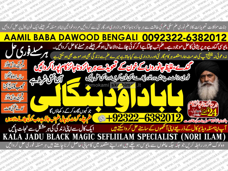 Amil Baba Dawood Bangali Contact on whatsapp 92322-6382012 is a renowned spiritual healer and master of ancient occult sciences, specializing in