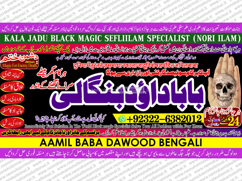 Amil Baba Dawood Bangali { PAK: 0322-6382012 ---- UAN: 0092-322-6382012} is a renowned spiritual healer and master of ancient occult sciences, specializing in Black Magic, Sephi Ilam, Nori Ilam, and Voodoo Spells. With decades of experience in the mystical arts, he has gained a reputation as a powerful and trusted guide for those seeking solutions to life's most challenging problems.