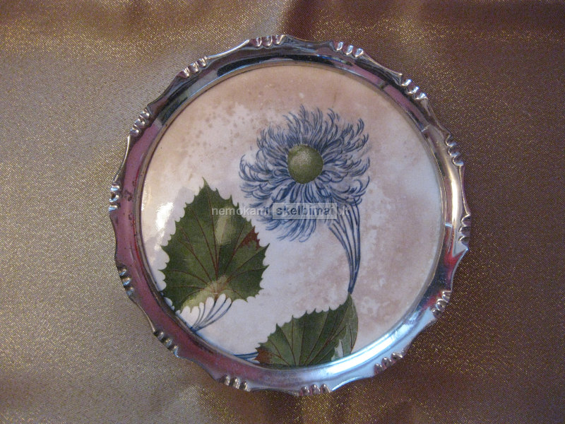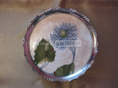 Parduodu antikvarinį padėkliuką (lekštutę). Ikikarinio laikotarpio. Prėkinėje pusėje nupiešta gėlytė, kitoje pusėje yra gamintojo ženklas. Diametras 17 cm.