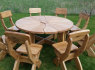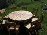 Gaminame lauko baldus. Ąžuolinis lauko baldu komplektas. Aliejumi dengtas du kartus. Komplektą sudaro: stalas (150cm. skersmens) ir 8 krėslai. Komplekto medienos storis 4cm. Už papildomą mokestį, galime pristatyti visoje Lietuvoje.Gaminame ir is uzsakovo medienos.