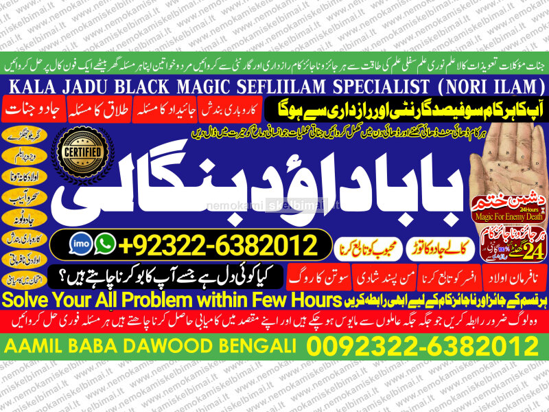 Amil Baba Dawood Bangali { PAK: 0322-6382012 ---- UAN: 0092-322-6382012} is a renowned spiritual healer and master of ancient occult sciences, specializing in Black Magic, Sephi Ilam, Nori Ilam, and Voodoo Spells. With decades of experience in the mystical arts, he has gained a reputation as a powerful and trusted guide for those seeking solutions to life's most challenging problems.