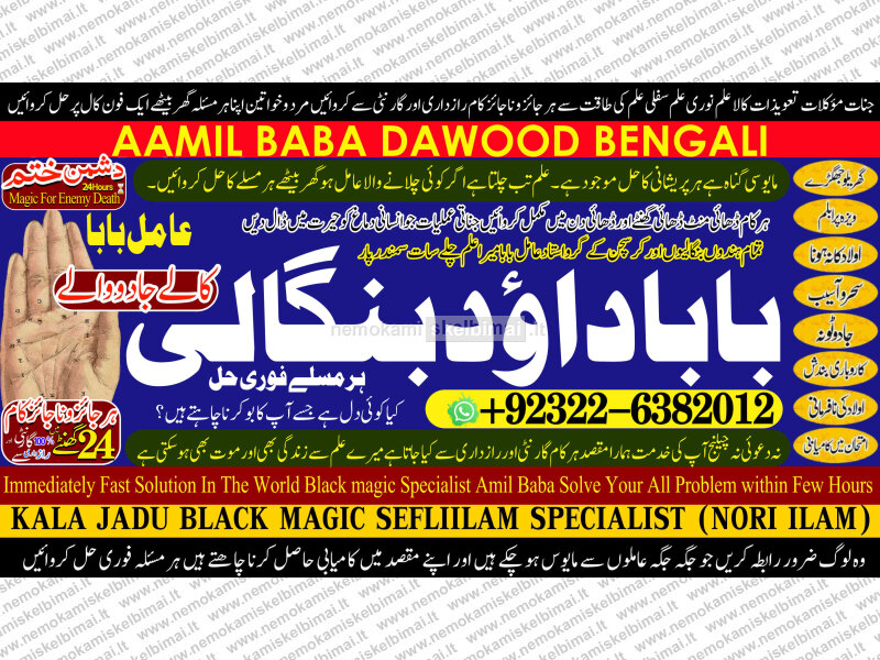 Amil Baba Dawood Bangali { PAK: 0322-6382012 ---- UAN: 0092-322-6382012} is a renowned spiritual healer and master of ancient occult sciences, specializing in Black Magic, Sephi Ilam, Nori Ilam, and Voodoo Spells. With decades of experience in the mystical arts, he has gained a reputation as a powerful and trusted guide for those seeking solutions to life's most challenging problems.