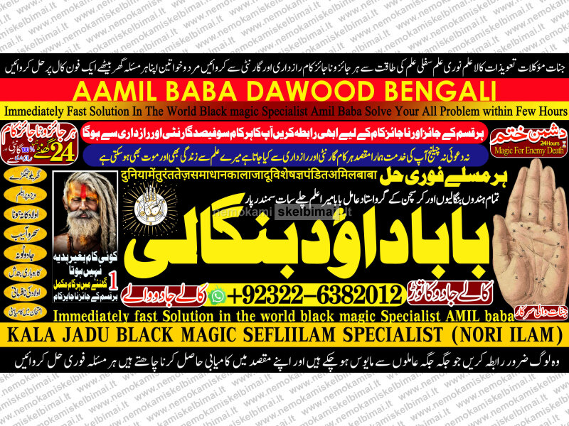 Amil Baba Dawood Bangali { PAK: 0322-6382012 ---- UAN: 0092-322-6382012} is a renowned spiritual healer and master of ancient occult sciences, specializing in Black Magic, Sephi Ilam, Nori Ilam, and Voodoo Spells. With decades of experience in the mystical arts, he has gained a reputation as a powerful and trusted guide for those seeking solutions to life's most challenging problems.