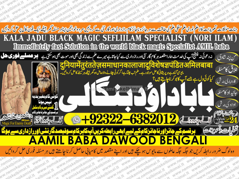 Amil Baba Dawood Bangali { PAK: 0322-6382012 ---- UAN: 0092-322-6382012} is a renowned spiritual healer and master of ancient occult sciences, specializing in Black Magic, Sephi Ilam, Nori Ilam, and Voodoo Spells. With decades of experience in the mystical arts, he has gained a reputation as a powerful and trusted guide for those seeking solutions to life's most challenging problems.