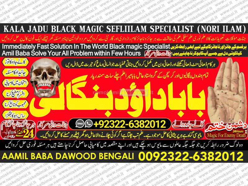 Amil Baba Dawood Bangali { PAK: 0322-6382012 ---- UAN: 0092-322-6382012} is a renowned spiritual healer and master of ancient occult sciences, specializing in Black Magic, Sephi Ilam, Nori Ilam, and Voodoo Spells. With decades of experience in the mystical arts, he has gained a reputation as a powerful and trusted guide for those seeking solutions to life's most challenging problems.