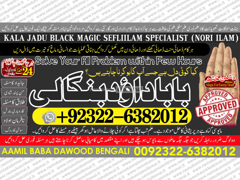Amil Baba Dawood Bangali { PAK: 0322-6382012 ---- UAN: 0092-322-6382012} is a renowned spiritual healer and master of ancient occult sciences, specializing in Black Magic, Sephi Ilam, Nori Ilam, and Voodoo Spells. With decades of experience in the mystical arts, he has gained a reputation as a powerful and trusted guide for those seeking solutions to life's most challenging problems.