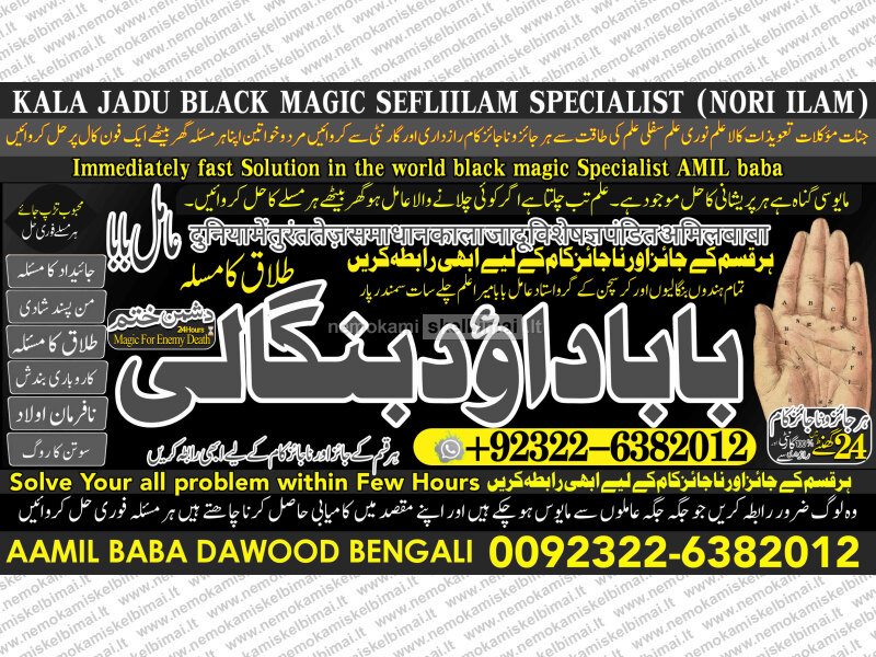 Amil Baba Dawood Bangali { PAK: 0322-6382012 ---- UAN: 0092-322-6382012} is a renowned spiritual healer and master of ancient occult sciences, specializing in Black Magic, Sephi Ilam, Nori Ilam, and Voodoo Spells. With decades of experience in the mystical arts, he has gained a reputation as a powerful and trusted guide for those seeking solutions to life's most challenging problems.