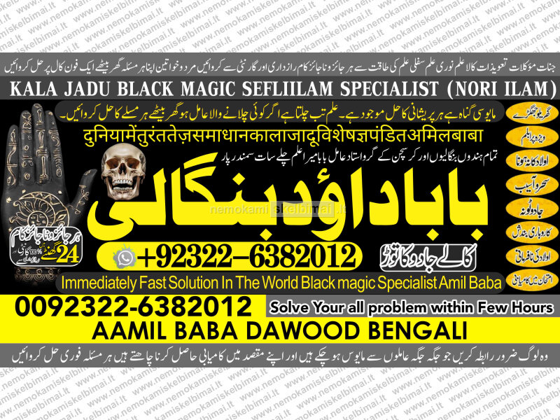 Amil Baba Dawood Bangali { PAK: 0322-6382012 ---- UAN: 0092-322-6382012} is a renowned spiritual healer and master of ancient occult sciences, specializing in Black Magic, Sephi Ilam, Nori Ilam, and Voodoo Spells. With decades of experience in the mystical arts, he has gained a reputation as a powerful and trusted guide for those seeking solutions to life's most challenging problems.