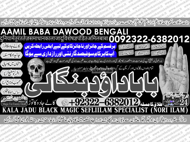 Amil Baba Dawood Bangali { PAK: 0322-6382012 ---- UAN: 0092-322-6382012} is a renowned spiritual healer and master of ancient occult sciences, specializing in Black Magic, Sephi Ilam, Nori Ilam, and Voodoo Spells. With decades of experience in the mystical arts, he has gained a reputation as a powerful and trusted guide for those seeking solutions to life's most challenging problems.