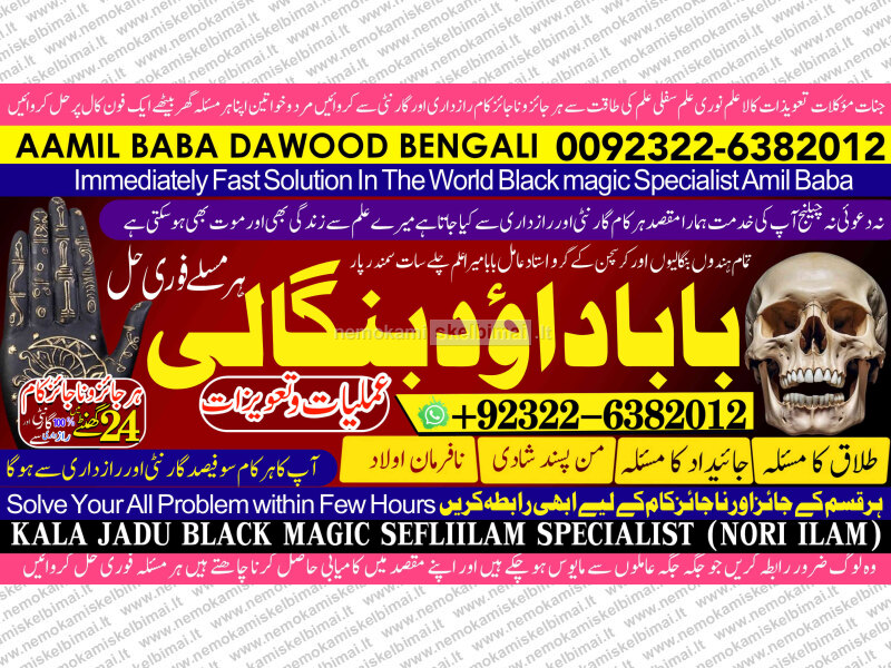 Amil Baba Dawood Bangali { PAK: 0322-6382012 ---- UAN: 0092-322-6382012} is a renowned spiritual healer and master of ancient occult sciences, specializing in Black Magic, Sephi Ilam, Nori Ilam, and Voodoo Spells. With decades of experience in the mystical arts, he has gained a reputation as a powerful and trusted guide for those seeking solutions to life's most challenging problems.
