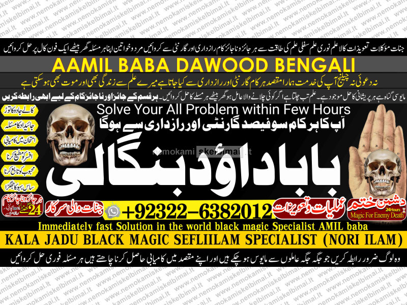 Amil Baba Dawood Bangali { PAK: 0322-6382012 ---- UAN: 0092-322-6382012} is a renowned spiritual healer and master of ancient occult sciences, specializing in Black Magic, Sephi Ilam, Nori Ilam, and Voodoo Spells. With decades of experience in the mystical arts, he has gained a reputation as a powerful and trusted guide for those seeking solutions to life's most challenging problems.