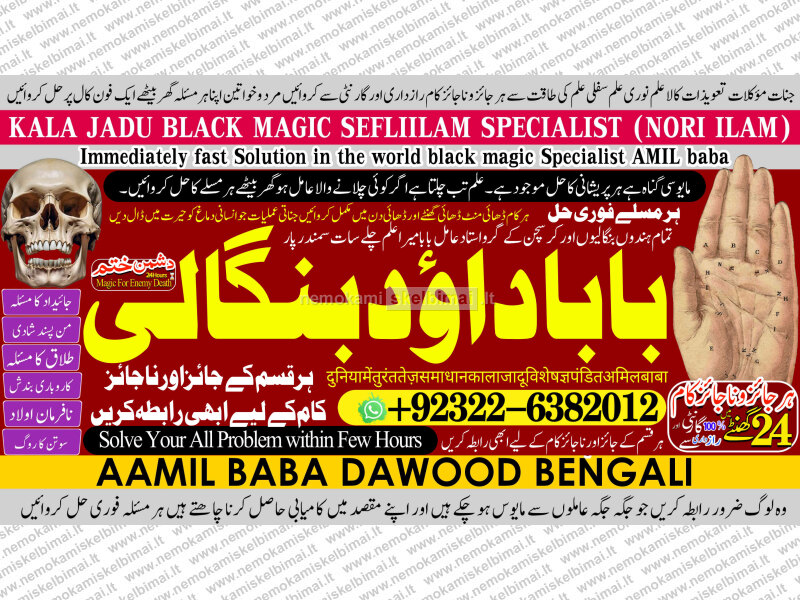 Amil Baba Dawood Bangali { PAK: 0322-6382012 ---- UAN: 0092-322-6382012} is a renowned spiritual healer and master of ancient occult sciences, specializing in Black Magic, Sephi Ilam, Nori Ilam, and Voodoo Spells. With decades of experience in the mystical arts, he has gained a reputation as a powerful and trusted guide for those seeking solutions to life's most challenging problems.