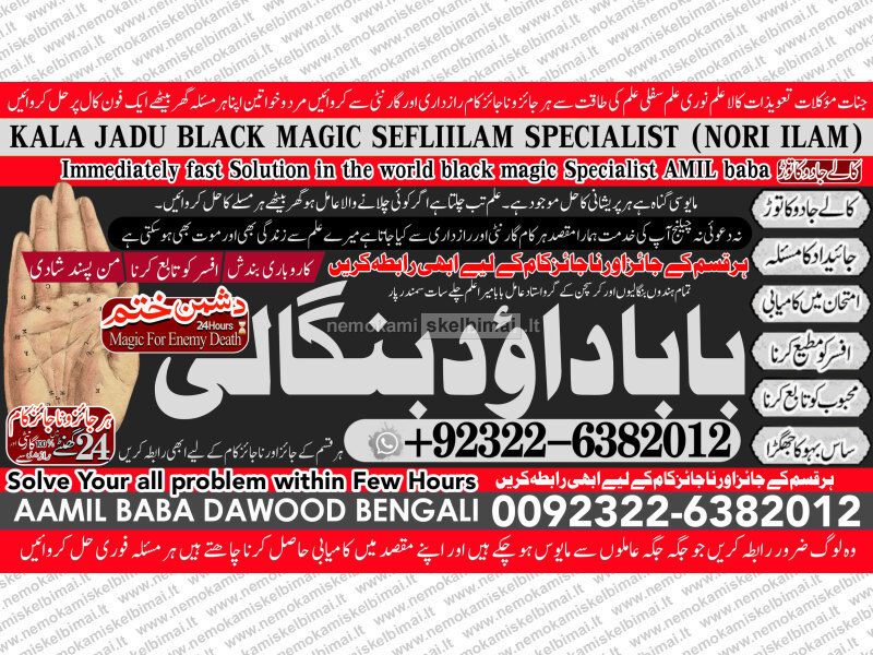 Amil Baba Dawood Bangali { PAK: 0322-6382012 ---- UAN: 0092-322-6382012} is a renowned spiritual healer and master of ancient occult sciences, specializing in Black Magic, Sephi Ilam, Nori Ilam, and Voodoo Spells. With decades of experience in the mystical arts, he has gained a reputation as a powerful and trusted guide for those seeking solutions to life's most challenging problems.