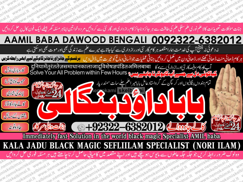 Amil Baba Dawood Bangali { PAK: 0322-6382012 ---- UAN: 0092-322-6382012} is a renowned spiritual healer and master of ancient occult sciences, specializing in Black Magic, Sephi Ilam, Nori Ilam, and Voodoo Spells. With decades of experience in the mystical arts, he has gained a reputation as a powerful and trusted guide for those seeking solutions to life's most challenging problems.