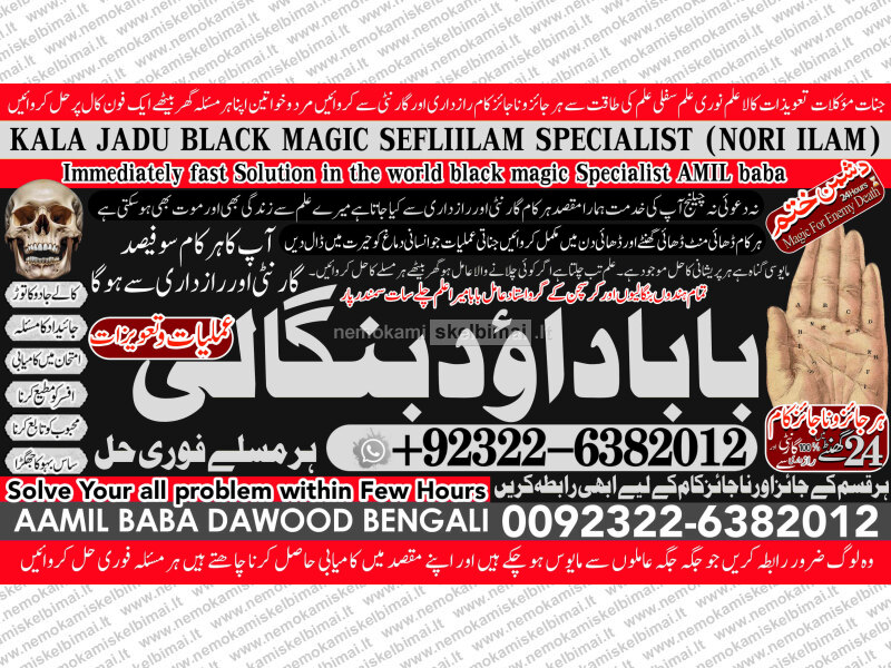 Amil Baba Dawood Bangali { PAK: 0322-6382012 ---- UAN: 0092-322-6382012} is a renowned spiritual healer and master of ancient occult sciences, specializing in Black Magic, Sephi Ilam, Nori Ilam, and Voodoo Spells. With decades of experience in the mystical arts, he has gained a reputation as a powerful and trusted guide for those seeking solutions to life's most challenging problems.
