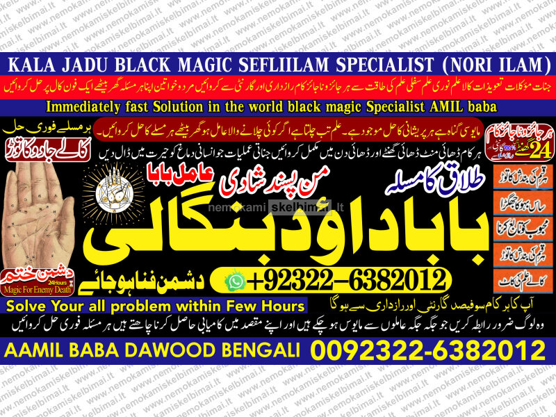 Amil Baba Dawood Bangali { PAK: 0322-6382012 ---- UAN: 0092-322-6382012} is a renowned spiritual healer and master of ancient occult sciences, specializing in Black Magic, Sephi Ilam, Nori Ilam, and Voodoo Spells. With decades of experience in the mystical arts, he has gained a reputation as a powerful and trusted guide for those seeking solutions to life's most challenging problems.