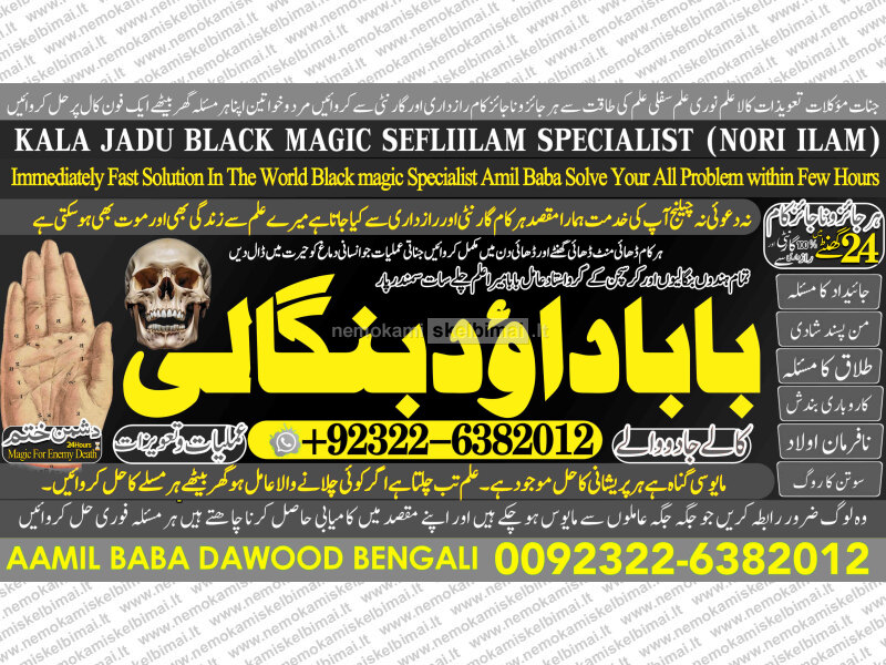 Amil Baba Dawood Bangali { PAK: 0322-6382012 ---- UAN: 0092-322-6382012} is a renowned spiritual healer and master of ancient occult sciences, specializing in Black Magic, Sephi Ilam, Nori Ilam, and Voodoo Spells. With decades of experience in the mystical arts, he has gained a reputation as a powerful and trusted guide for those seeking solutions to life's most challenging problems.