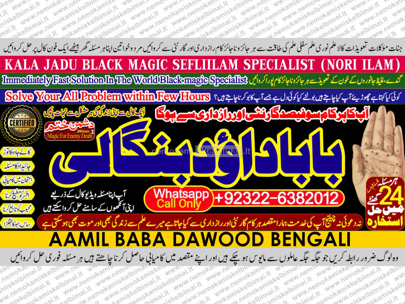 Amil Baba Dawood Bangali Contact on whatsapp +92322-6382012 is a renowned spiritual healer and master of ancient occult sciences, specializing in Black Magic, Sephi Ilam, Nori Ilam, and Voodoo Spells. With decades of experience in the mystical arts, he has gained a reputation as a powerful and trusted guide for those seeking solutions to life's most challenging problems.