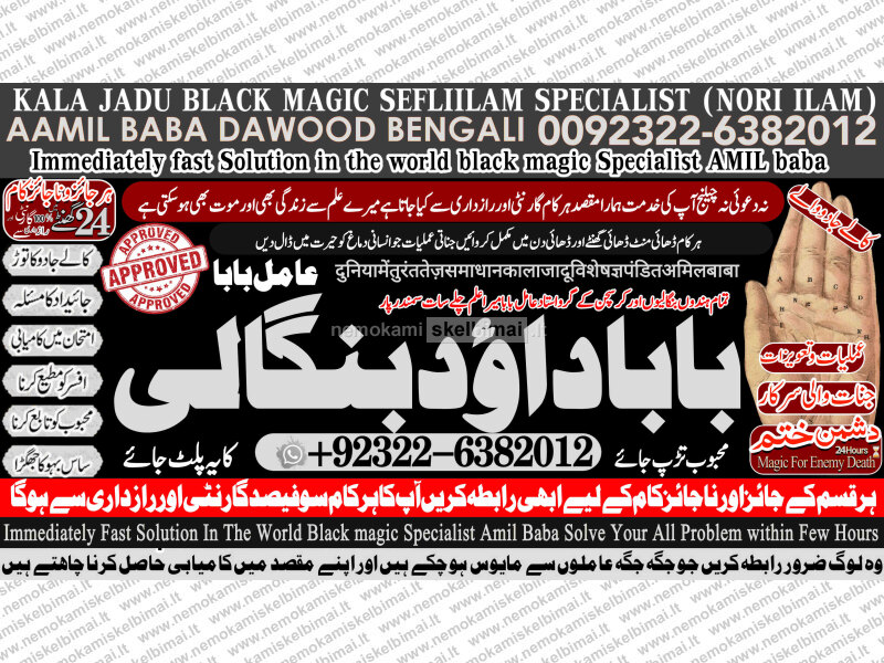 Amil Baba Dawood Bangali { PAK: 0322-6382012 ---- UAN: 0092-322-6382012} is a renowned spiritual healer and master of ancient occult sciences, specializing in Black Magic, Sephi Ilam, Nori Ilam, and Voodoo Spells. With decades of experience in the mystical arts, he has gained a reputation as a powerful and trusted guide for those seeking solutions to life's most challenging problems.
