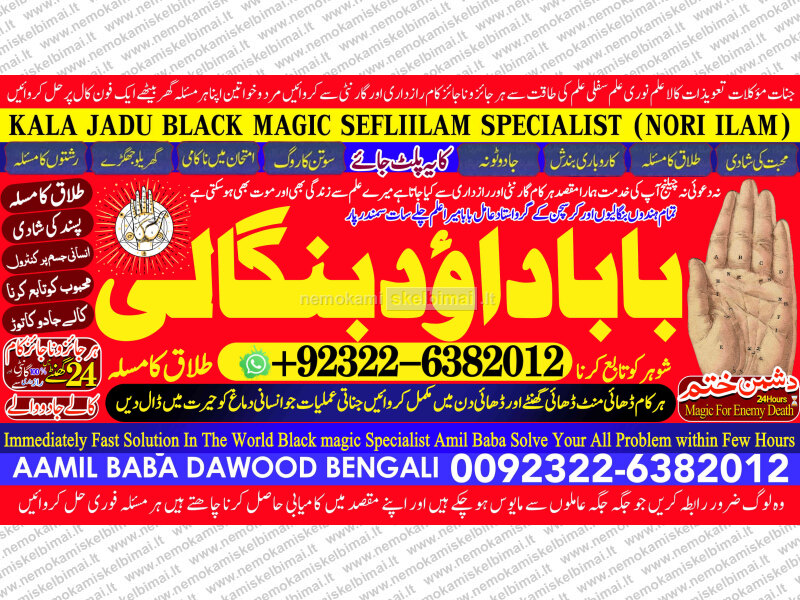 Amil Baba Dawood Bangali { PAK: 0322-6382012 ---- UAN: 0092-322-6382012} is a renowned spiritual healer and master of ancient occult sciences, specializing in Black Magic, Sephi Ilam, Nori Ilam, and Voodoo Spells. With decades of experience in the mystical arts, he has gained a reputation as a powerful and trusted guide for those seeking solutions to life's most challenging problems.