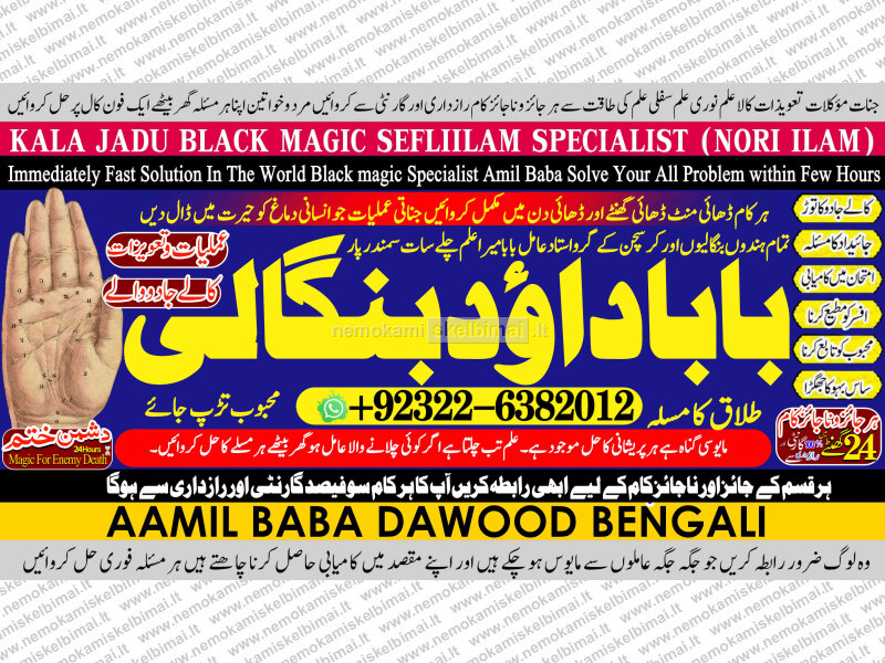 Amil Baba Dawood Bangali { PAK: 0322-6382012 ---- UAN: 0092-322-6382012} is a renowned spiritual healer and master of ancient occult sciences, specializing in Black Magic, Sephi Ilam, Nori Ilam, and Voodoo Spells. With decades of experience in the mystical arts, he has gained a reputation as a powerful and trusted guide for those seeking solutions to life's most challenging problems.