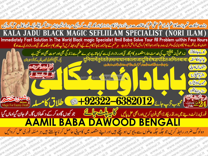 Amil Baba Dawood Bangali { PAK: 0322-6382012 ---- UAN: 0092-322-6382012} is a renowned spiritual healer and master of ancient occult sciences, specializing in Black Magic, Sephi Ilam, Nori Ilam, and Voodoo Spells. With decades of experience in the mystical arts, he has gained a reputation as a powerful and trusted guide for those seeking solutions to life's most challenging problems.