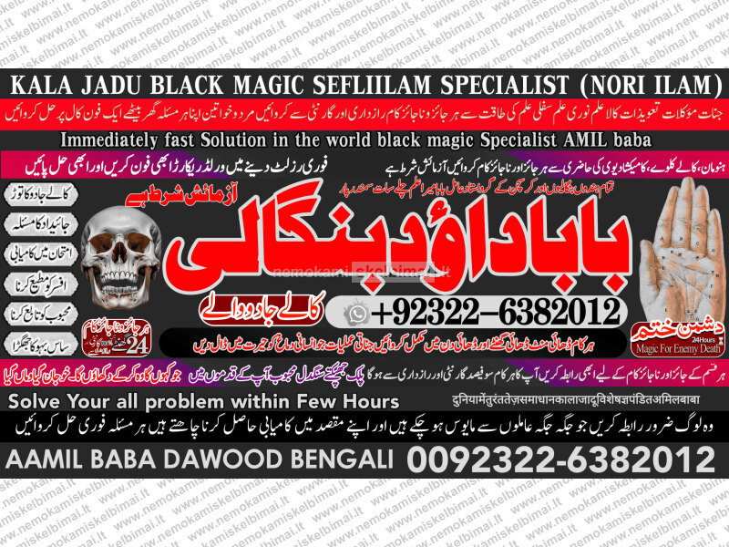 Amil Baba Dawood Bangali { PAK: 0322-6382012 ---- UAN: 0092-322-6382012} is a renowned spiritual healer and master of ancient occult sciences, specializing in Black Magic, Sephi Ilam, Nori Ilam, and Voodoo Spells. With decades of experience in the mystical arts, he has gained a reputation as a powerful and trusted guide for those seeking solutions to life's most challenging problems.
