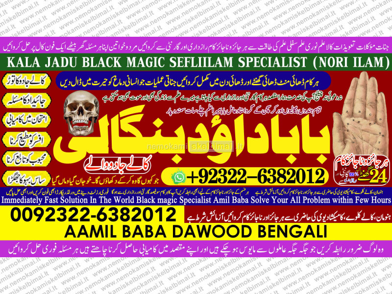 Amil Baba Dawood Bangali { PAK: 0322-6382012 ---- UAN: 0092-322-6382012} is a renowned spiritual healer and master of ancient occult sciences, specializing in Black Magic, Sephi Ilam, Nori Ilam, and Voodoo Spells. With decades of experience in the mystical arts, he has gained a reputation as a powerful and trusted guide for those seeking solutions to life's most challenging problems.
