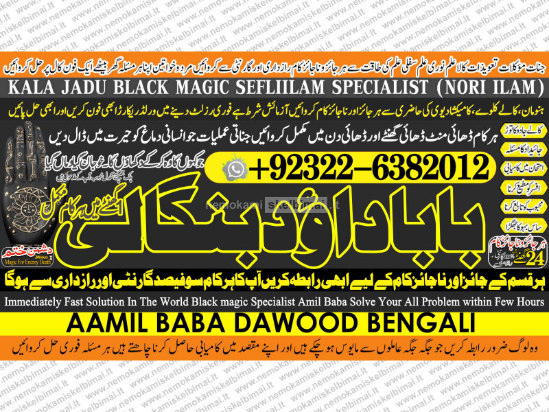 Amil Baba Dawood Bangali { PAK: 0322-6382012 ---- UAN: 0092-322-6382012} is a renowned spiritual healer and master of ancient occult sciences, specializing in Black Magic, Sephi Ilam, Nori Ilam, and Voodoo Spells. With decades of experience in the mystical arts, he has gained a reputation as a powerful and trusted guide for those seeking solutions to life's most challenging problems.