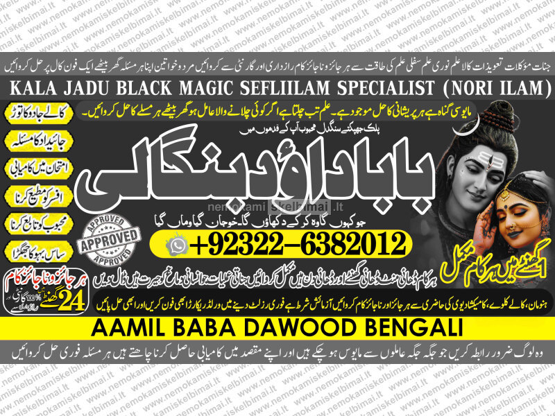 Amil Baba Dawood Bangali { PAK: 0322-6382012 ---- UAN: 0092-322-6382012} is a renowned spiritual healer and master of ancient occult sciences, specializing in Black Magic, Sephi Ilam, Nori Ilam, and Voodoo Spells. With decades of experience in the mystical arts, he has gained a reputation as a powerful and trusted guide for those seeking solutions to life's most challenging problems.