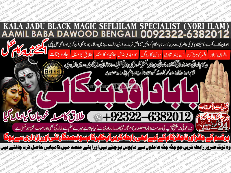 Amil Baba Dawood Bangali { PAK: 0322-6382012 ---- UAN: 0092-322-6382012} is a renowned spiritual healer and master of ancient occult sciences, specializing in Black Magic, Sephi Ilam, Nori Ilam, and Voodoo Spells. With decades of experience in the mystical arts, he has gained a reputation as a powerful and trusted guide for those seeking solutions to life's most challenging problems.