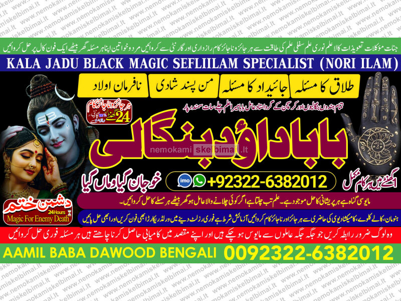 Amil Baba Dawood Bangali { PAK: 0322-6382012 ---- UAN: 0092-322-6382012} is a renowned spiritual healer and master of ancient occult sciences, specializing in Black Magic, Sephi Ilam, Nori Ilam, and Voodoo Spells. With decades of experience in the mystical arts, he has gained a reputation as a powerful and trusted guide for those seeking solutions to life's most challenging problems.