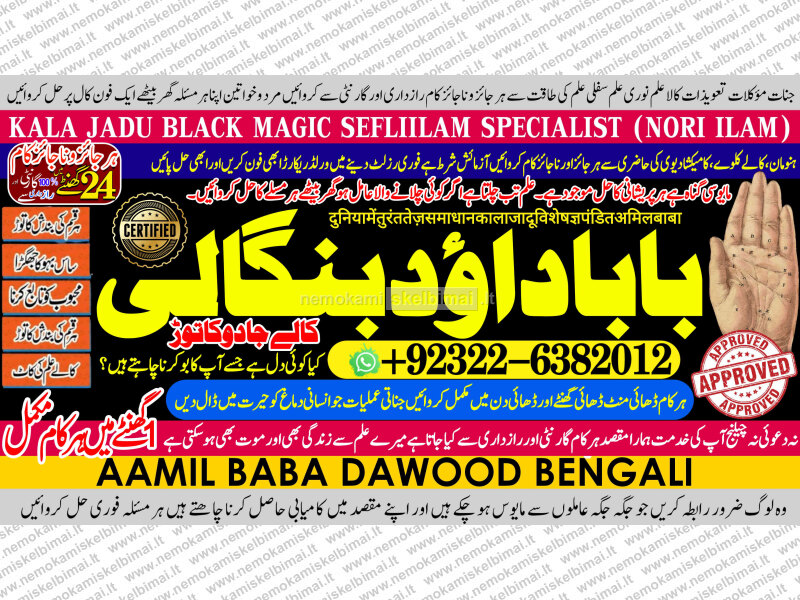 Amil Baba Dawood Bangali { PAK: 0322-6382012 ---- UAN: 0092-322-6382012} is a renowned spiritual healer and master of ancient occult sciences, specializing in Black Magic, Sephi Ilam, Nori Ilam, and Voodoo Spells. With decades of experience in the mystical arts, he has gained a reputation as a powerful and trusted guide for those seeking solutions to life's most challenging problems.