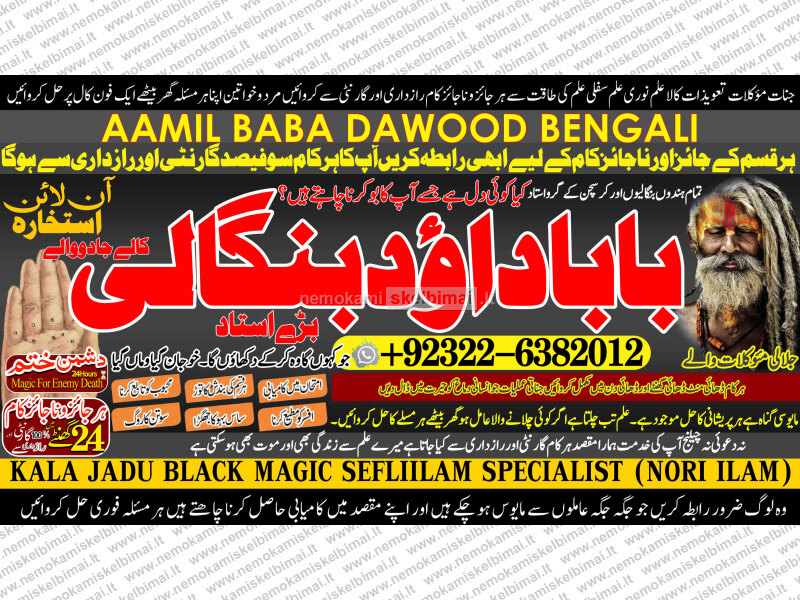 Amil Baba Dawood Bangali { PAK: 0322-6382012 ---- UAN: 0092-322-6382012} is a renowned spiritual healer and master of ancient occult sciences, specializing in Black Magic, Sephi Ilam, Nori Ilam, and Voodoo Spells. With decades of experience in the mystical arts, he has gained a reputation as a powerful and trusted guide for those seeking solutions to life's most challenging problems.