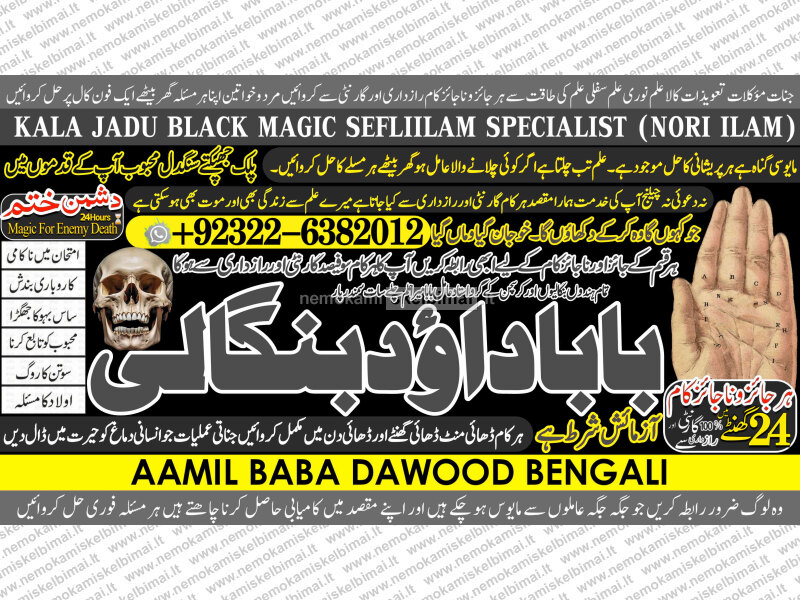 Amil Baba Dawood Bangali { PAK: 0322-6382012 ---- UAN: 0092-322-6382012} is a renowned spiritual healer and master of ancient occult sciences, specializing in Black Magic, Sephi Ilam, Nori Ilam, and Voodoo Spells. With decades of experience in the mystical arts, he has gained a reputation as a powerful and trusted guide for those seeking solutions to life's most challenging problems.