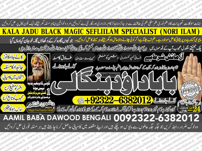 Amil Baba Dawood Bangali { PAK: 0322-6382012 ---- UAN: 0092-322-6382012} is a renowned spiritual healer and master of ancient occult sciences, specializing in Black Magic, Sephi Ilam, Nori Ilam, and Voodoo Spells. With decades of experience in the mystical arts, he has gained a reputation as a powerful and trusted guide for those seeking solutions to life's most challenging problems.