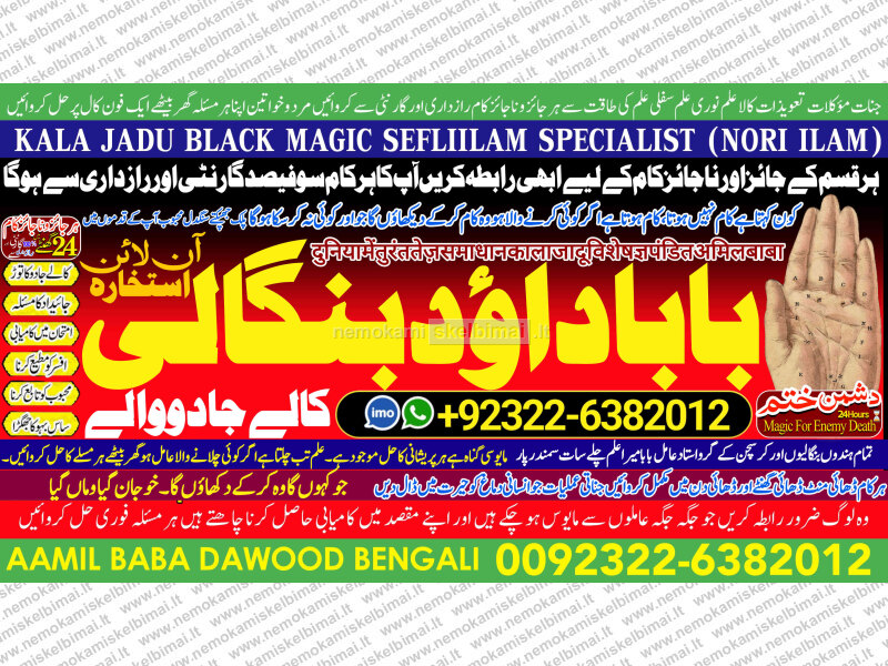 Amil Baba Dawood Bangali { PAK: 0322-6382012 ---- UAN: 0092-322-6382012} is a renowned spiritual healer and master of ancient occult sciences, specializing in Black Magic, Sephi Ilam, Nori Ilam, and Voodoo Spells. With decades of experience in the mystical arts, he has gained a reputation as a powerful and trusted guide for those seeking solutions to life's most challenging problems.