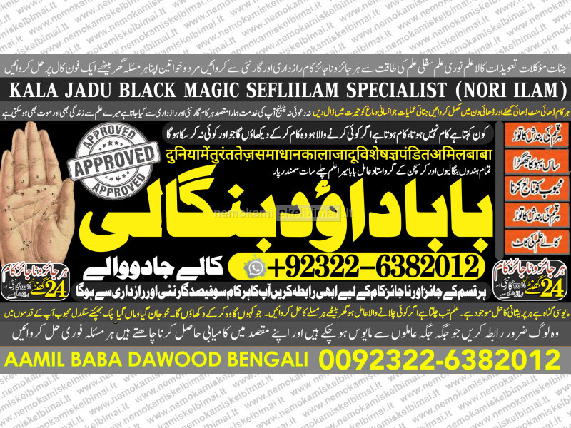Amil Baba Dawood Bangali { PAK: 0322-6382012 ---- UAN: 0092-322-6382012} is a renowned spiritual healer and master of ancient occult sciences, specializing in Black Magic, Sephi Ilam, Nori Ilam, and Voodoo Spells. With decades of experience in the mystical arts, he has gained a reputation as a powerful and trusted guide for those seeking solutions to life's most challenging problems.