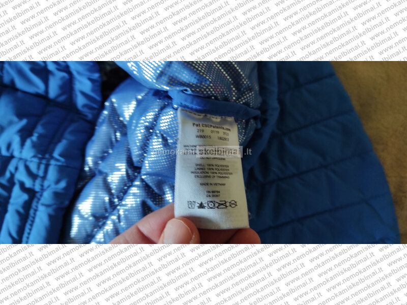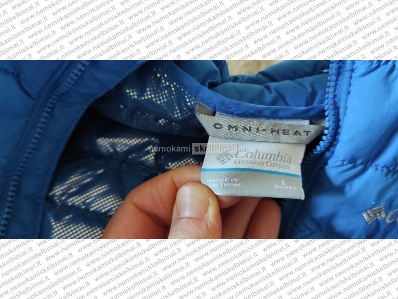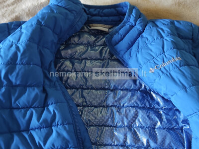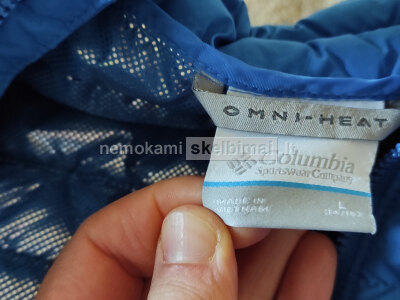Originali Columbia firmos rudens/pavasario striukė. Plona, lengva, užpildas sinteponas, bet dėl Omni Heat technologijos gana gerai išlaiko šilumą. Būklė gera, bet yra pora nedidelių dėmelių ir bendras nusidėvėjimas. Dydis paaugliškas L, skirtas 12-13 metų vaikams, bet tiks liekno sudėjimo, stambesniems bus per siaura.