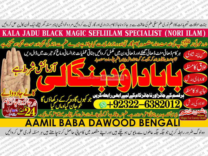 Amil Baba Dawood Bangali { PAK: 0322-6382012 ---- UAN: 0092-322-6382012} is a renowned spiritual healer and master of ancient occult sciences, specializing in Black Magic, Sephi Ilam, Nori Ilam, and Voodoo Spells. With decades of experience in the mystical arts, he has gained a reputation as a powerful and trusted guide for those seeking solutions to life's most challenging problems.