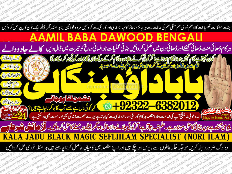 Amil Baba Dawood Bangali { PAK: 0322-6382012 ---- UAN: 0092-322-6382012} is a renowned spiritual healer and master of ancient occult sciences, specializing in Black Magic, Sephi Ilam, Nori Ilam, and Voodoo Spells. With decades of experience in the mystical arts, he has gained a reputation as a powerful and trusted guide for those seeking solutions to life's most challenging problems.