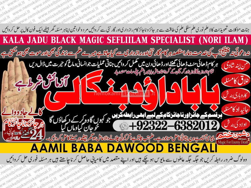Amil Baba Dawood Bangali { PAK: 0322-6382012 ---- UAN: 0092-322-6382012} is a renowned spiritual healer and master of ancient occult sciences, specializing in Black Magic, Sephi Ilam, Nori Ilam, and Voodoo Spells. With decades of experience in the mystical arts, he has gained a reputation as a powerful and trusted guide for those seeking solutions to life's most challenging problems.