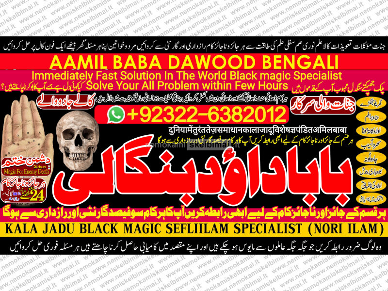 Amil Baba Dawood Bangali { PAK: 0322-6382012 ---- UAN: 0092-322-6382012} is a renowned spiritual healer and master of ancient occult sciences, specializing in Black Magic, Sephi Ilam, Nori Ilam, and Voodoo Spells. With decades of experience in the mystical arts, he has gained a reputation as a powerful and trusted guide for those seeking solutions to life's most challenging problems.